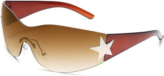 LIKSMU Rimless Y2K Sunglasses for Women Men Wrap Around Fashion Sunglasses Oversized Sun Glasses