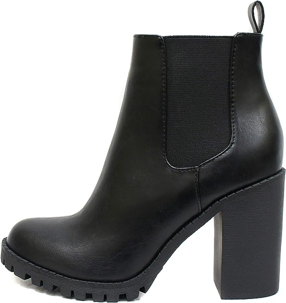 Soda Glove - Ankle Boot w/Lug Sole Elastic Gore and Chunky Heel