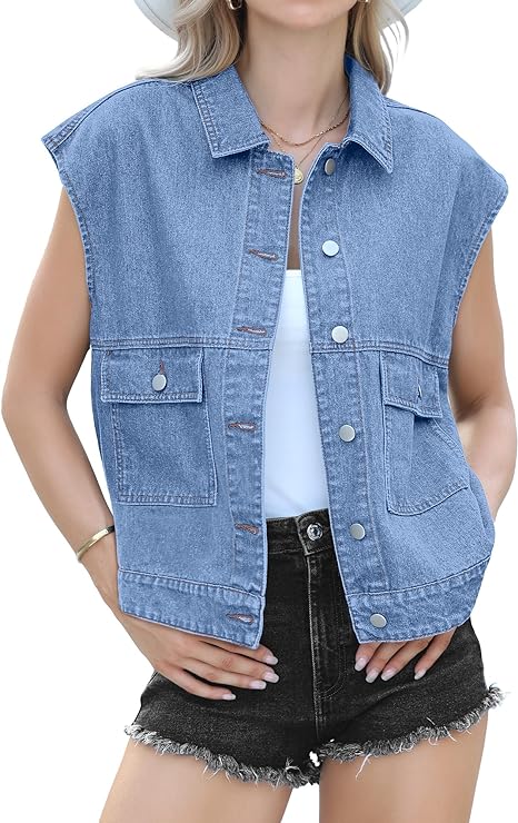 luvamia Denim for Women Oversized Button Down Sleeveless Jean Jacket Fashion Casual WesternOuterwear