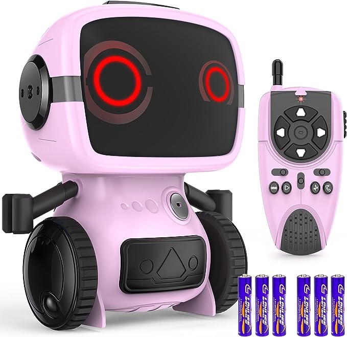 ALLCELE Girls Robot Toy, Rechargeable RC Robot for Kids, Remote Control Toy with Music and LED Eyes