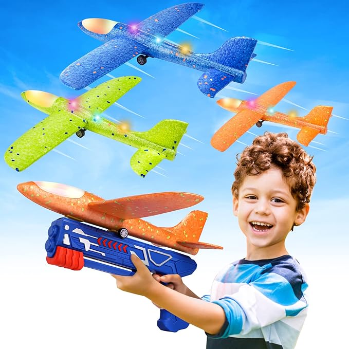 Fuwidvia 3 Pack Airplane Launcher Toys, 2 Flight Modes LED Foam Glider Catapult Plane Toy for Boys