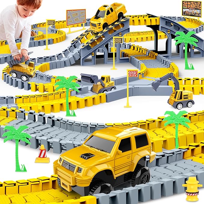 Kids Toys 253 PCS Construction Toys Race Tracks Toy for 3 4 5 6 7 8 Year Old Boys Girls