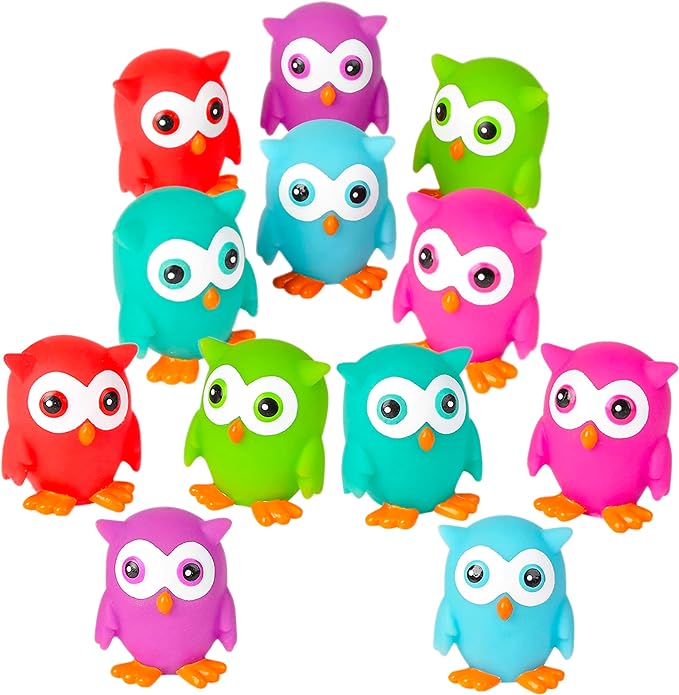 One Dozen (12) 2" Rubber Bath Toy Animals (Owls)