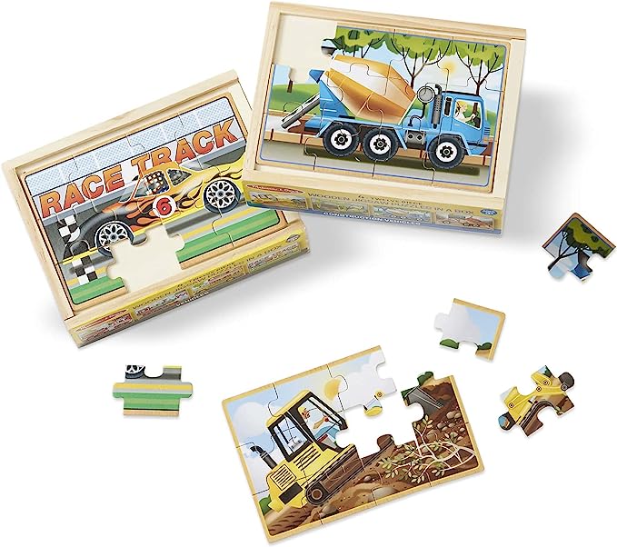 Melissa & Doug Construction Vehicles 4-in-1 Wooden Jigsaw Puzzles in a Box (48 pcs)