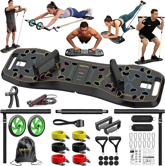 Improved Push-Up Board: LALAHIGH's updated push-up board features a larger, more stable design with additional slots for a wider range of variations. Suitable for all fitness levels, the color-coded board targets specific muscle groups for effective chest, triceps, shoulders, and back exercises.